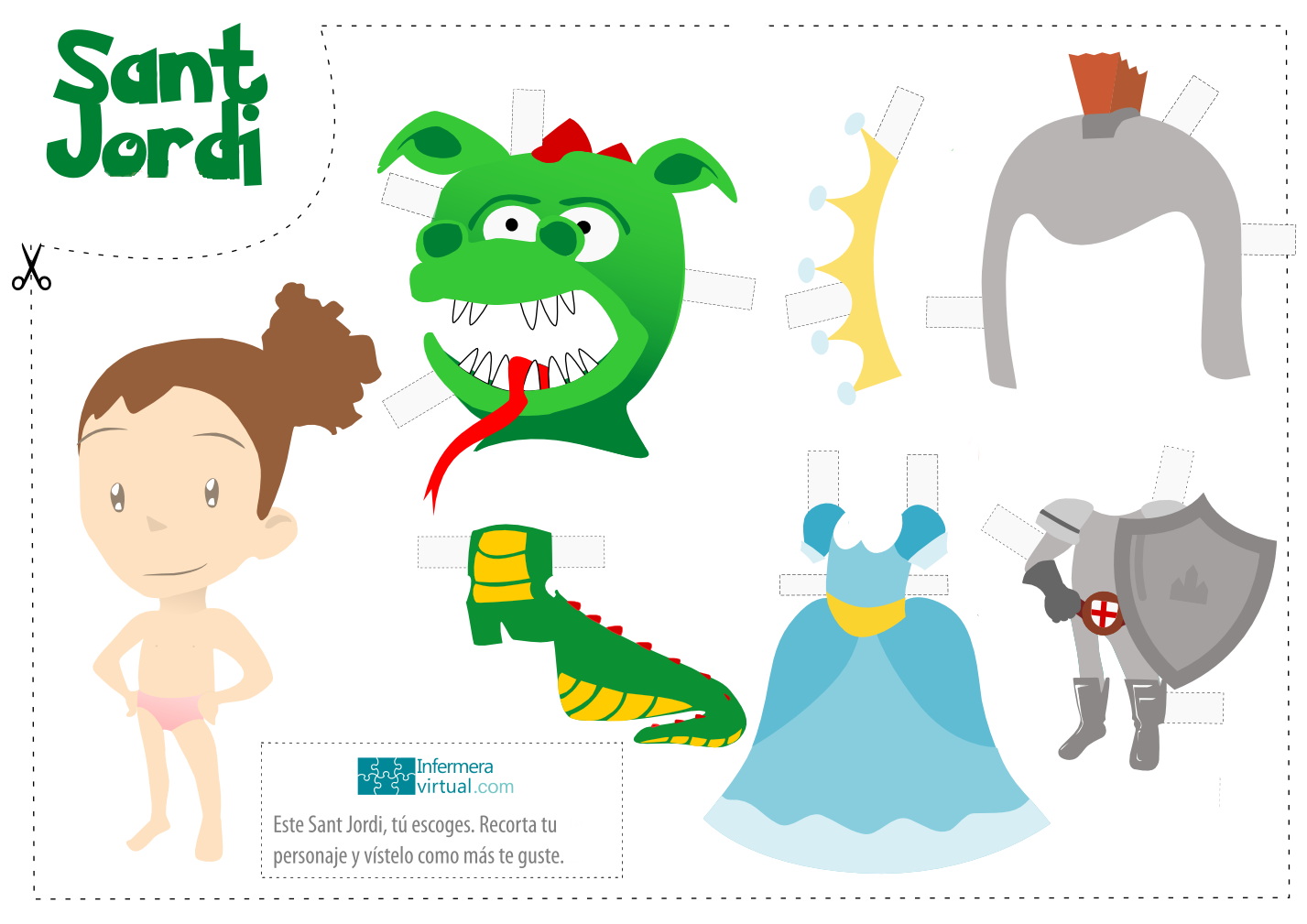 Recortables Sant Jordi para colorear y trabajar con el niño/a